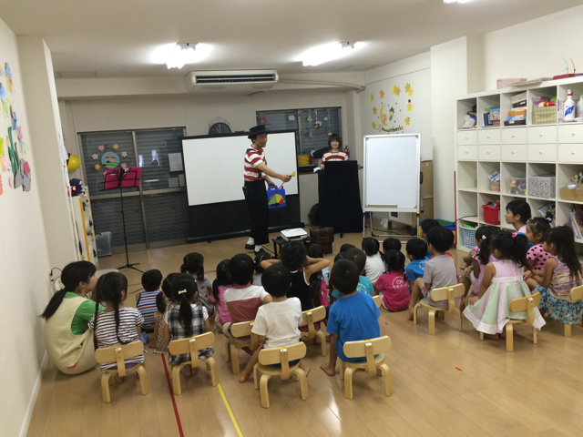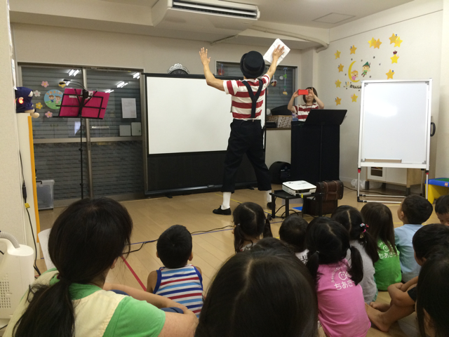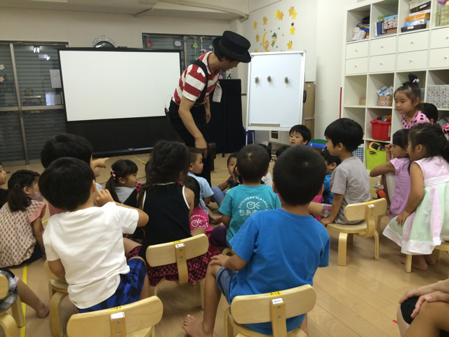 夏休み保育のイベントとして『ゆうさんのデジタル紙芝居』のパフォーマンスを鑑賞しました。