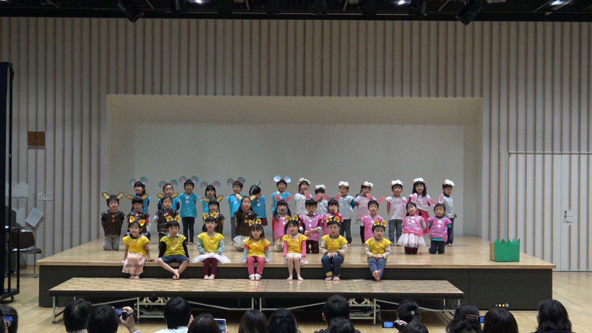 舞台の前と舞台上1列目のお友達が、いったん袖にひっこみ、位置を入れ替えて登場するという難しいことにもチャレンジしました。