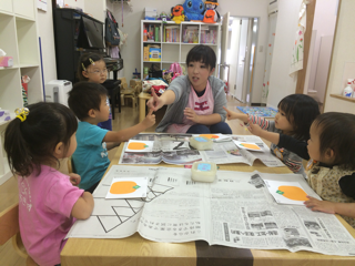 指がベトベトするのに顔をしかめる子もいましたが、みんな真剣にやっていました。