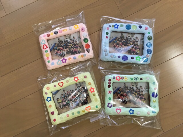 粘土で作ったフォトフレーム。中にはみんなの写真を入れてお渡ししました。
