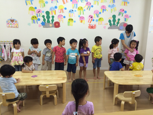 夏休み保育スタート! 2015年7月21日 2022年4月27日 日常 夏休み保育がスタートしました。 昨年度の卒園生が9名加わり、通常保育とは違った楽しさがあると思います。 お名前を覚えてもらえるよう、自己紹介をしました。 さっそく名前を覚えて、仲良く遊ぶ姿が見られました。 ちあきっずは一学年しかないのが、幼稚園としてはもの足りないのかな・・・と思っていましたが、この機会に他学年とのふれ合いから学んでもらえると嬉しいです。
