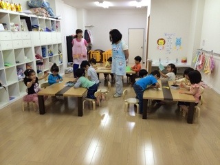 室内遊び 2014年5月15日 2022年4月27日 日常 今日は雨が降ったり止んだりの天気なので、室内で過ごしています。 お魚釣りゲームをやるために、みんなにお魚の絵に色を塗ってもらいました。 早くやりたそうでしたが、先生が釣れるように完成させてくれるまで、ちょっと待って下さいね。 だいぶ上手になったアンパンマン体操や椅子取りゲームなどで、体も動かしました。 椅子取りゲームは負けて悔しくて、ご機嫌斜めになってしまう子もちらほら。 それもいい経験にして、次は勝とうと思ったり、負けても応援出来る、気持ちの切り替えが出来る子に育って欲しいです。