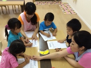 延長保育だからこそ出来ること 2014年6月27日 2022年4月27日 日常 園児の中にはもう字が書ける子もいます。 けれども幼稚園でも文字を練習するのは年長さん。 ちあきっずのカリキュラムのなかで、文字を教える予定はありません。 まだ鉛筆も正しく持てない子もいるので、そちらの方をまずは教えなくてはいけません。 ですが、少人数の延長保育でなら一人一人見てあげられるので、自分の名前を書いてみるのも、遊びとして楽しいのでは?と思いやらせてみたところ、ノリノリでお勉強してくれました。 延長保育ならではのお楽しみです。