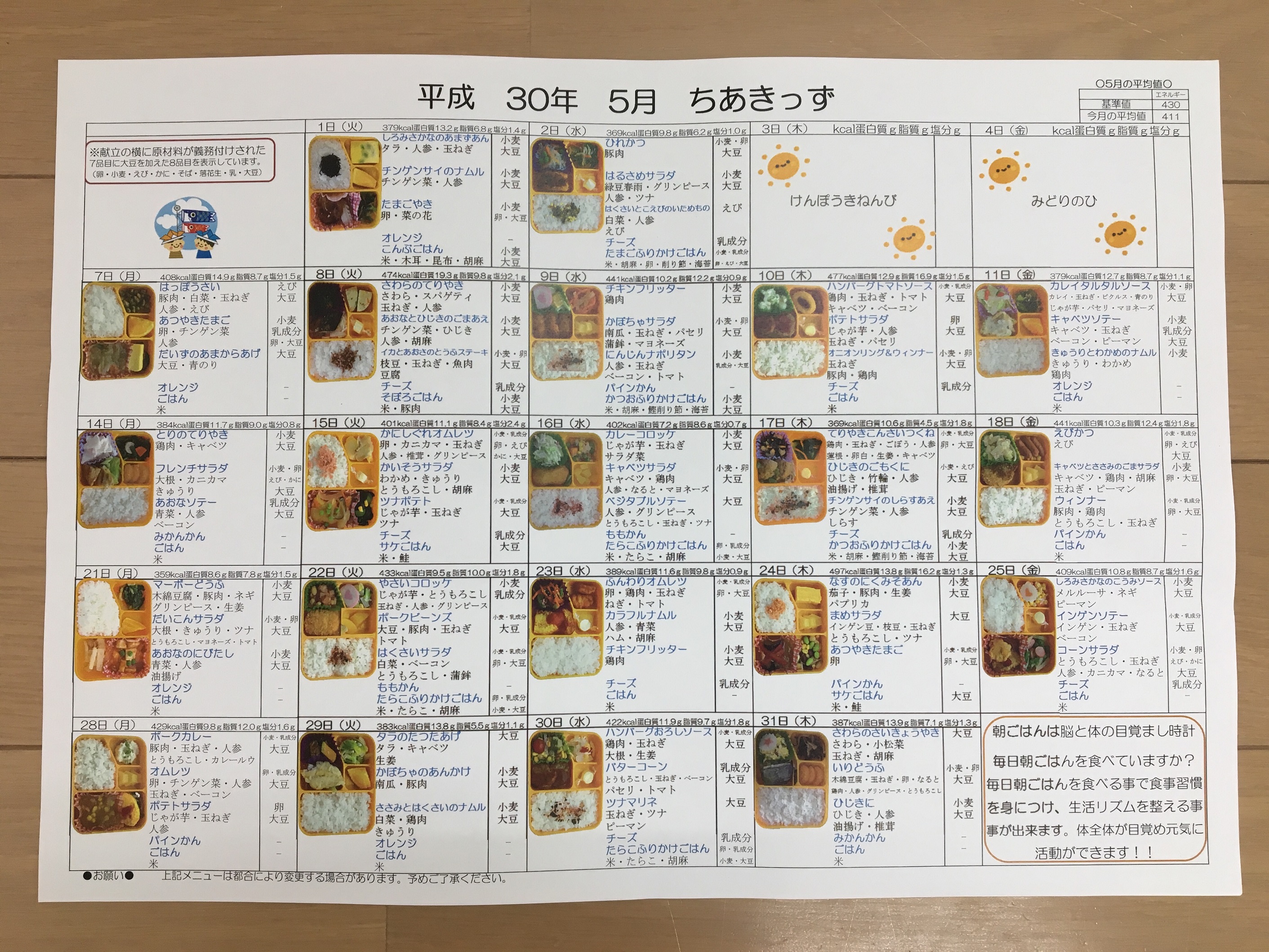 給食弁当 5月のメニュー