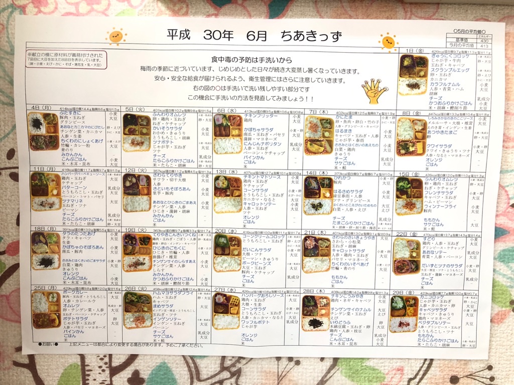 給食弁当 6月メニュー