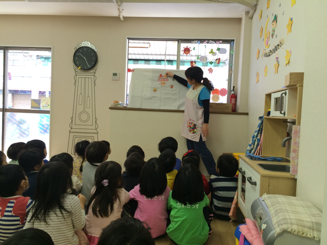 先生の出し物は、パネルシアターでのキノコちゃんのお誕生日を祝うお話でした。