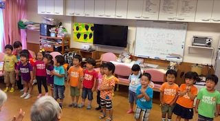 おじいちゃん、おばあちゃんがいない子もいるかもしれないので、自分のおじいちゃんおばあちゃんにプレゼントをすることは見送りましたが、本日『デイサービスセンター辰巳陽だまり』を訪問し、歌と手遊びを披露してきました。