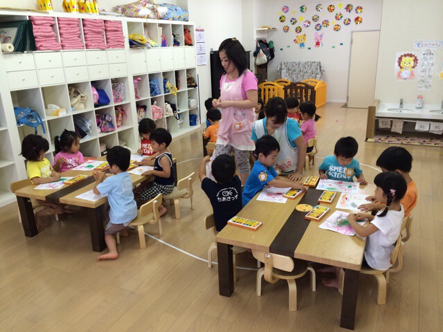夏休み期間中はお休みのお友達もいるので、糊やハサミをステップアップさせるのではなく、楽しさを重視して、自宅に持ち帰る事ができる制作活動をリクエストしてあります。