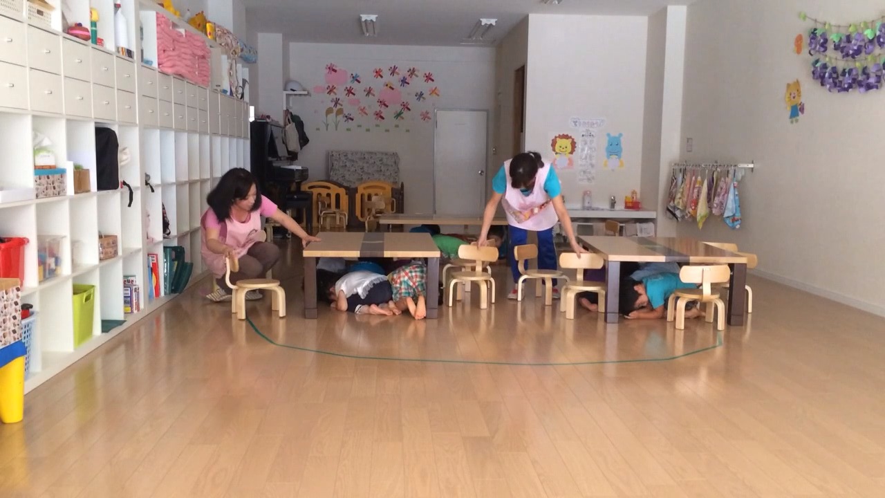 避難訓練 2014年9月30日 2022年4月27日 日常 避難訓練も回を重ね、先生の急な合図にも反応し、さっと机の下に隠れられるようになりました。 最近入園してくれたお友達は、防災頭巾を被るのが初めてだったので、避難の後には防災頭巾の早かぶりの練習もしました。 先生方は髪がボサボサになりながらも、真剣に指導してくれていました。